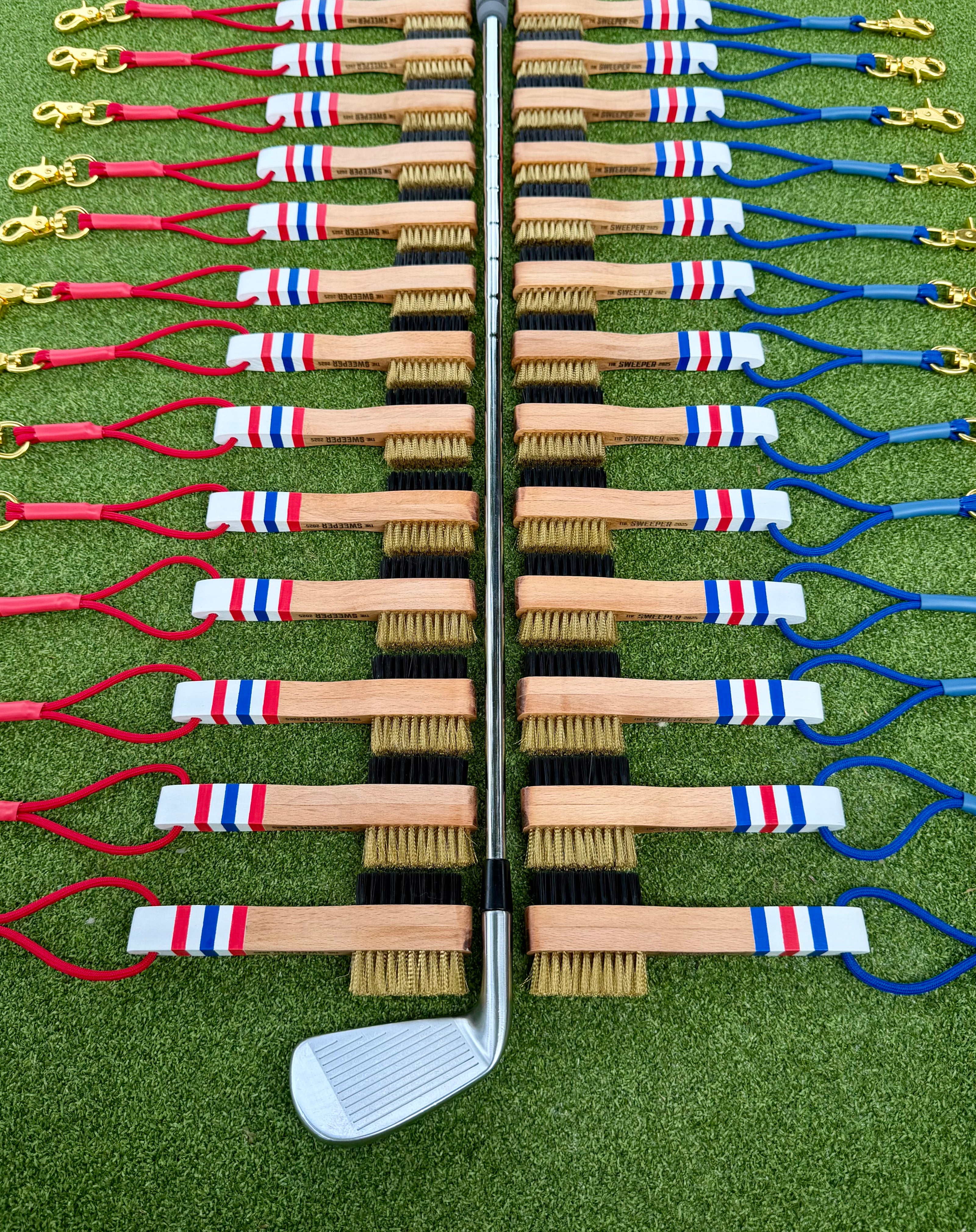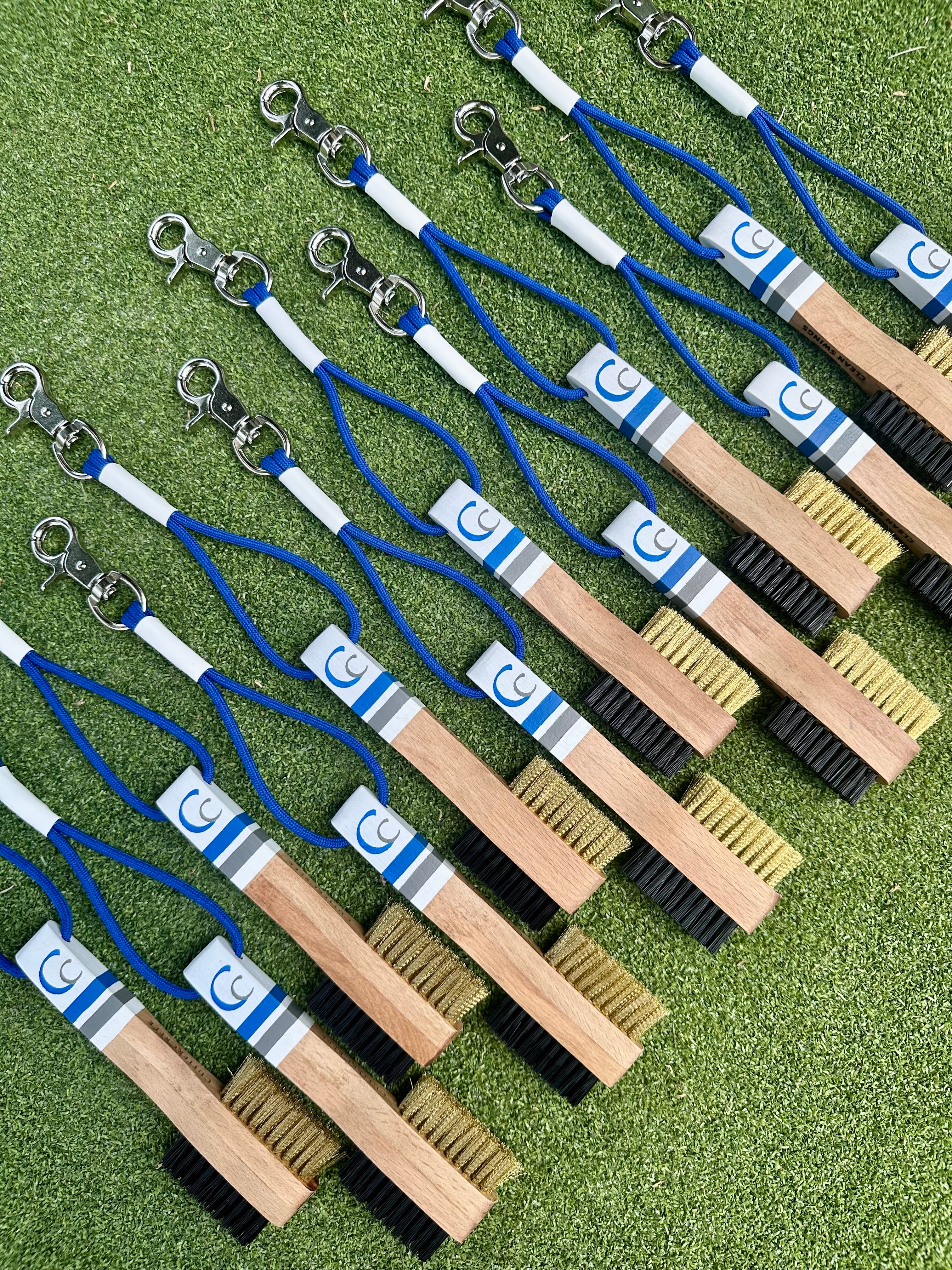 Handcrafted golf club brushes designed to clean clubs and turn heads.